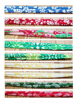 ハワイアンファブリックで製作した鼻緒をすげたアロハスタイルです。HIGH HEELはかかとの高いタイプのKAKKOです。それぞれのモデル名はハワイの言葉で表現されています。